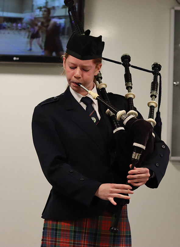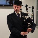 Banbridge Academy’s Remembrance Assemblies this week were conducted with the utmost dignity and solemn respect, marking a significant occasion in the school’s annual calendar. The ceremonies were attended by a representative from 502 (Ulster) Squadron, Royal Auxiliary Air Force, based at Aldergrove, whose presence added a formal and meaningful military connection to proceedings. The events were further supported by Banbridge Academy’s own Army Cadet Force contingent, alongside representatives from the wider Royal Air Force Air Cadets and lead Sea Cadet, symbolising unity across the three Services. The order of service, thoughtfully arranged by Mr McLoughlin, featured contributions from guest Mr John Mathers, Chair of the Board of Governors and members of the school’s senior leadership team, all of whom demonstrated great reverence and composure throughout. The poignant tones of The Last Post were beautifully performed by members of the school orchestra, capturing the spirit of remembrance with precision and emotion. This was followed by a moving solo on the bagpipes—The Battle’s O’er—performed by Katherine Graham, whose playing provided a stirring accompaniment as the cadets were ceremonially piped out of the assembly hall to conduct the wreath-laying at the front of the Academy. The occasion was supported wholeheartedly by staff and observed with impeccable respect by the entire pupil body, reinforcing the school’s enduring commitment to honouring those who served and sacrificed in the pursuit of peace and freedom. The pupils each received a Challenge coin from the RAF representative and the school was presented with a framed image of the famous Vampire aircraft so heavily associated with 502 as a token of their respect for Banbridge Academy and their few who gave their tomorrow for our today.