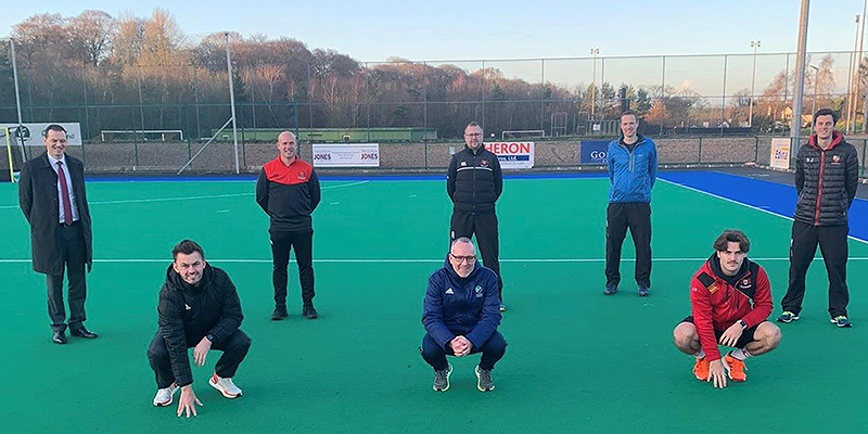 Banbridge Academy Hockey Coaches with Edward Rowe, 1st XI Captain and Mark Tumilty, the Irish Senior Men’s Hockey Coach