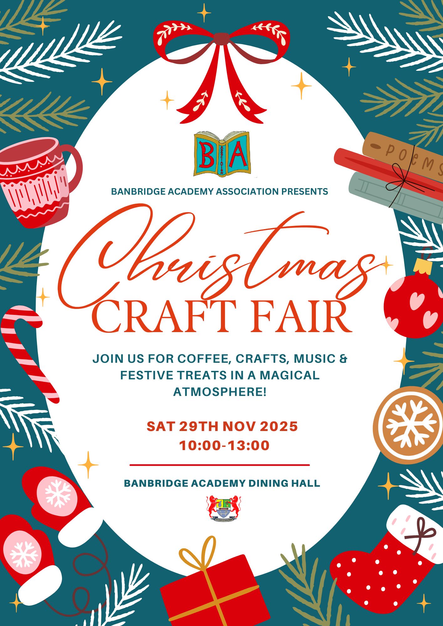 Please come and join us for the Craft Fair on the 29 November and help us as we work together to support the work of Banbridge Academy.